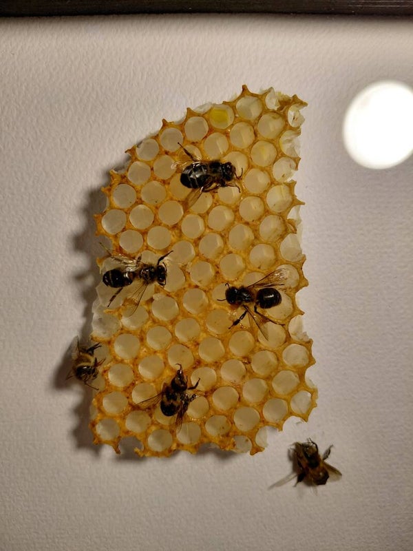 Deze bijtjes klimmen op hun honingraat in deze mooie zwarte lijst van 17x17cm